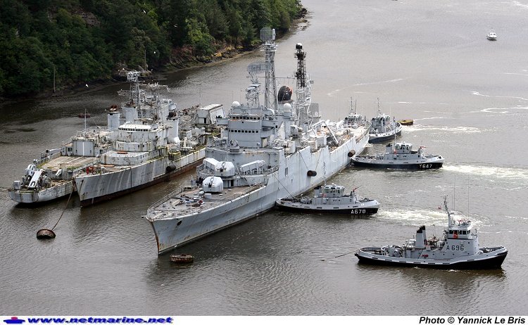 a quitté le port militaire de Brest pour rejoindre le cimetière de bateaux de Landévennec (25 juin 2007).