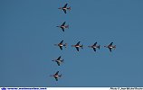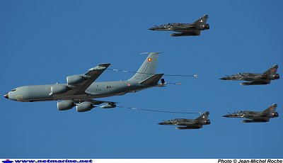 - Lors du défilé aérien, le E2C Hawkeye prévu, a été remplacé par un neuvième Super-Etendard (visible sur la photo). En effet, à l'issue de la répétition du 12 août, le E2C a pris un oiseau lors de son arrivée sur le terrain de Nîmes Garons, et, en attente des inspections complémentaires de turbopropulseur et d'hélice, il a dû annuler sa participation à ce défilé. Au bilan rien de grave pour le moteur et une petite retouche hélice !
