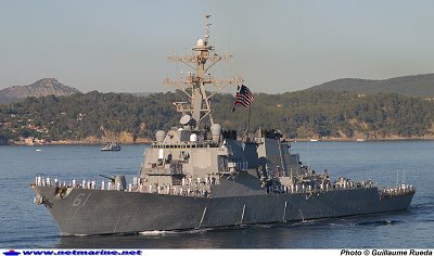 ![]() L'US Navy était présente avec le destroyer USS Ramage |