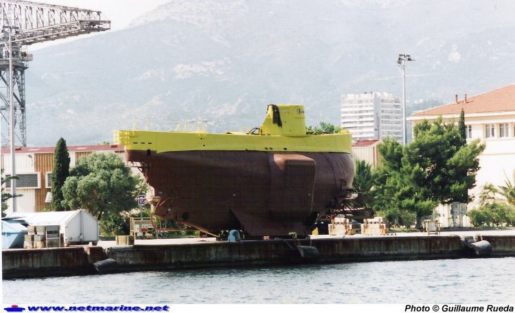 L'Archimède dans l'enceinte de la base navale de Toulon, attend son transfert vers Cherbourg (mai 2001)