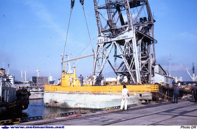 Mise à l'eau de l'Archimède dans l'enceinte de l'Arsenal de Toulon (1969)