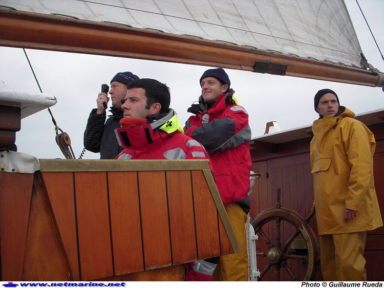 , le lieutenant de vaisseau Laurent Matter lors du départ de la
