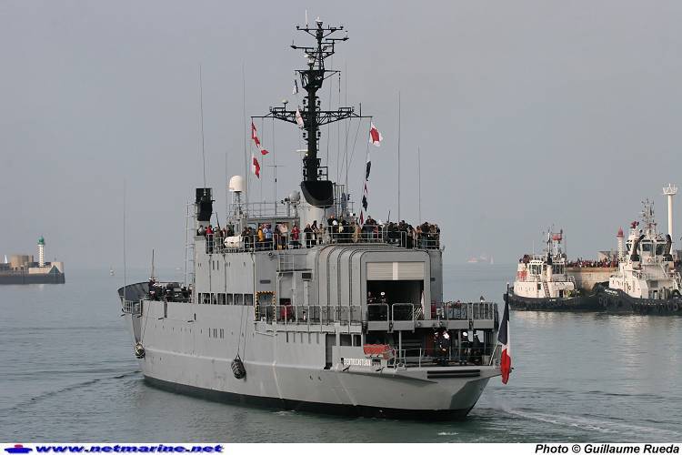 à la manoeuvre dans le port du Havre, lors du départ de la