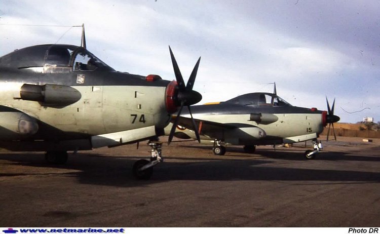 ![]() Deux Breguet Alizé sur le tarmac de l'aérodrome d'In Amguel, au Sahara, à 150 km au nord de Tamanrasset. Il s'agissait de la base interarmes du centre d'expérimentation des oasis (le site des expériences nucléaires souterraines françaises dans le territoire à l'époque Algérien). Ils avaient été affectés à In Amguel pour le temps de l'expérience « Saphir », nom du tir de la plus puissante bombe atomique jamais tirée au Sahara (environ 120 kt). Il me semble que leur mission était la surveillance de sécurité des abords de la montagne Tan Afella sous laquelle les tirs étaient effectués. (photo © Camille Maillet - mi-février 1965)