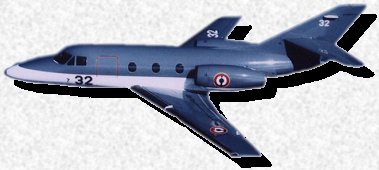 Le premier exemplaire est livré à l'aéronautique navale en avril 1975. Les 6 avions commandés sont répartis entre les escadrilles 57S et 3S stationnées respectivement à Landivisiau et Hyères-Le Palyvestre. Au sein de la 57S le Falcon est principalement utilisé pour l'entraînement des pilote de chasse au vol basse altitude, à l'utilisation du radar et aux procédures IFR (instruments flight rules ou règles de vol aux instruments) au côtés des MS760 Paris. Les appareils de la 3S sont surtout employés pour des missions de soutien tel que les liaisons rapides, les calibrations radar, la surveillance maritime. Au retrait des Morane Paris en 1997, les 6 avions sont regroupés en Bretagne au sein de la 57S. Depuis son entrée au service, l'appareil arbore une élégante livrée bicolore : blanche partie inférieure et grise partie supérieure.