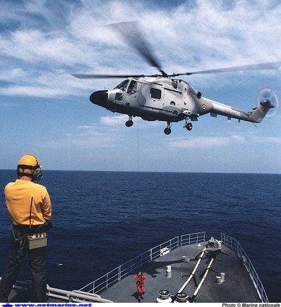 effectue un hélitreuillage sur la plage avant de la frégate antiaérienne