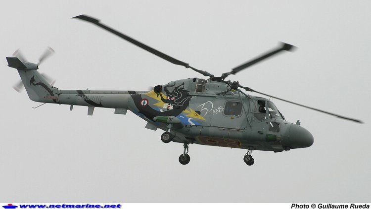 ![]() Créée le 9 septembre 1974, la flottille 34F a trente ans. Les "Molina", as du pinceaux, ont exercé leur talent sur un hélicoptère Lynx magnifiquement décoré aux couleurs du dragon, emblème de la flottille. Ici en survol de la rade de Brest (14 juillet 2004)