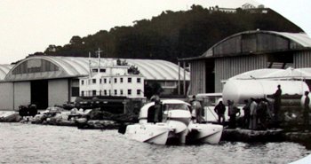 ![]() A la rentrée un nouvel intrus éveille la curiosité des riverains, l'hydroptère de la SNIAS occupe le quai Ballot et effectue des essais en grande rade. |