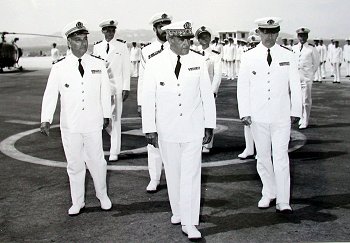 ![]() Cinquantenaire de la BAN : Les anciens commandants posent devant le HSS n°182, sorti pour l'occasion (29 mai 1983). |