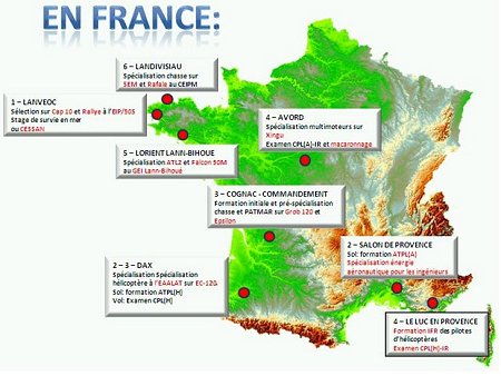Ecole de l’aéronautique navale de Cognac : Implantation des différents centres de formation