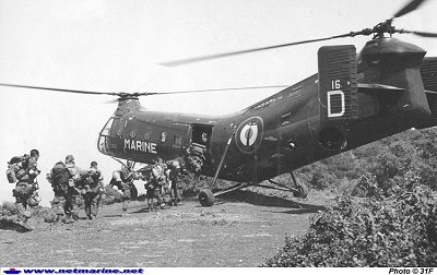 1- L'Algérie A peine la guerre d'Indochine terminée, la France va se trouver engagée dans le conflit d'Algérie. Afin de faire face aux exigences du moment et de lutter contre la rébellion naissante, le gouvernement français envoie des renforts. En outre, les Etats-majors décident de changer le style de combat, de type de combattants et d'adopter d'autres matériels, principalement en moyens de transport. C'est ainsi que l'on se tourne vers les appareils à voilure tournante. Depuis début 1952, des hélicoptères Sikorsky S51, puis Piasecki Hup2, sont mis en service à bord des porte-avions pour la sécurité des mouvements d'aviation. Leurs activités s'étendent ensuite aux missions de liaison et d'évacuation sanitaire. L'insurrection algérienne décide la Marine, en juin 1955, à envoyer un détachement de Sikorsky S55 de la 10S. Ce détachement est inclus dans le Groupement Hélicoptères n° 2, creuset où se mélangent des S55 de l'ALAT, de l'Aéronautique Navale et de l'Armée de l'Air. Le 4 juin 1956,