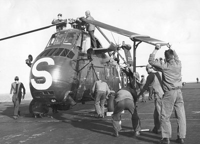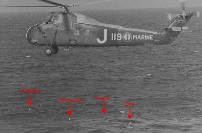 commandée depuis le 18 janvier par le lieutenant de vaisseau Le 1er janvier 1966, se constitue le Groupe d'Hélicoptères Occasionnel du Pacifique, qui réunit la 31F et une majeure partie de la 23S. Le 4 mars, le GHOP embarque sous les ordres d'ALGROUPA (futur ALPA) sur le Foch, vers le Pacifique. Sa mission principale devient le repêchage "chalutage" des têtes d'engins de prélèvement après tir nucléaire, à laquelle se rajoutent des missions de transport, de liaison, plus quelques petits exercices ASM (seuls 3 sonars ont été emmenés, pour garder le contact avec l'ASM). ![]() La flottille quitte, une nouvelle fois, Saint-Mandrier pour l'année entière. Elle est affectée le 1er janvier 1968 au Clemenceau et au Groupe ALFA, qui s'en retourne au Pacifique pour de nouvelles expérimentations nucléaires. Dès son retour à Saint-Mandrier, le 12 décembre, fort de leur entraînement en héliportage au CEP, le commandant propose de faire de sa flottille une flottille mixte, assaut et ASM. Ce projet n'est pas retenu par les autorités supérieures, et la 31F doit reprendre son entraînement en ASM. Depuis le retour du CEP, les sonars AQS4 sont progressivement remplacés par des DUAV1, sonars français plus performants. La torpille Mk44 fait son apparition sur HSS et les moteurs sont modifiés pour acquérir plus de répondant et de fiabilité. Cependant, lors