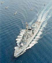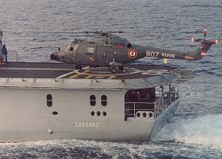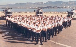 2 avril 1996 : Début du déploiement en ZMOI (Zone Maritime Océan Indien) pour La frégate La Motte-Picquet. Escales à Djibouti (12 avril), Mascate (18 au 19 avril), Dubaï (27 au 30 avril), Abu Dhabi (E.A.U. - 30 avril au 4 mai). Exercice franco-tunisien Kroumire. L'année 1996 marque la fin d'une époque. La flottille 31F, qui armait les frégates anti-aérienne Jean Bart et Cassard, laisse place aux Panther de la 36F. Le Jean Bart accueillera son premier Panther en décembre 1996, le Cassard en septembre 1997. Le 13 août 1997, le capitaine de corvette Philippe Gavériaux prend le commandement de la flottille. Le même mois, un Lynx et son détachement du HMS Northumberland sera accueilli sur la BAN Saint-Mandrier. Le 5 juin 1997 : Un feu moteur contraint un Lynx à se poser en urgence sur le stade du Gaou (pointe du Brusc). Le Montcalm, en mission du 8 au 29 août, fait escale à Haïfa et Patras. Le Jean de Vienne, de son coté, est en océan Indien du 19 octobre au 30 décembre 1997 : Escales à Port Saïd, Djibouti, Dubaï, Doha, Damman, Koweit City, Mascate, Abu Dhabi. Le 20 mai 1998, le Lynx du Dupleix, alors en Méditerranée, survole à la tombée de la nuit une embarcation rapide qui se dirige vers les côtes espagnoles. Surpris par l'arrivée de l'hélicoptère, l'équipage jette plusieurs colis à la mer et profite de l'obscurité pour disparaître. Un de ses colis, qui était resté en surface, sera récupéré. Il contenait 35 kg de résine de canabis ! De juin à juillet 1998, le Montcalm est en mission de surveillance en Méditerranée, il fait escale à Tartous (Syrie) et Istambul. Peu après, du 12 au 27 septembre 1998, le groupe Cassard, La Motte-Picquet et Marne participe à l'exercice franco-égyptien Cléopâtre auquel était conviée la Marine italienne (2 escales à Alexandrie, 17 au 21 septembre et 23 au 27 septembre). L'année 1999 débute par l'exercice Armor qui réunit 3 Lynx, 2 Super-Frelon, 2 Puma et 1 Sea-King, sur la BAN Landivisiau. Du 24 janvier au 5 avril 1999, le Jean de Vienne effectue l'exercice JTFEX (Joint Task Force Exercice). Escales aux Açores, à Norfolk, Baltimore, Roosevelt Roads, Charleston, Cadix). Un passex avec le HMS Mountrose permettra au Lynx de rester 24h00 à bord de la frégate britannique. Le 27 août 1999, le capitaine de corvette du Plessis d'Argentré prend le commandement de la flottille. Le Montcalm est en mission Khor Angar (surveillance du conflit entre l'Ethiopie et l'Erythrée) entre le 15 avril et le 9 août. Le Jean de Vienne fait escale, dans la même période à Alexandrie (exercice Bright Star). Renouant avec les missions de service public, la flottille vole au secours de l'Aude inondée, dans le cadre du détachement à Carcassonne du 16 au 19 novembre. La frégate Dupleix appareille de Toulon le 6 novembre 2000 pour participer à l'exercice Sarment 2000. Participaient également à cet exercice au sein du Task Group 473.03, force européenne constituée pour l'occasion et regroupant 7 frégates, un détachement Lynx de la flottille à bord de la frégate britannique Northumberland et le SNA Emeraude. La frégate La Motte-Picquet et ses 2 Lynx 31F, partent en mission Khor Angar, de surveillance du conflit entre l'Ethiopie et l'Erythrée et de protection de la République de Djibouti le 29 novembre. Passage du canal de Suez (3 décembre), plusieurs escales à Djibouti. Le bâtiment sera de retour à Toulon le 23 janvier. L'année 1999 se termine tragiquement pour la 31F. Rappelant à tous que, même en temps de paix, le métier de pilote d'hélicoptère de combat n'est pas sans danger, deux décès viendront endeuiller la flottille : Le 30 octobre, le LV Senee, alors officier-pilote d'échange franco-allemand décède lors du crash de son Lynx en mer, et le 28 décembre, le LV Rioult décède au commande du Lynx 803 qui s'écrase dans la campagne varoise. La réduction du format des armées frappe les flottilles 31F et 34F. Au 1er janvier 2000, elle passent de 12 à 8 aéronefs et de 24 à 18 pilotes. Un Lynx de la 31F est embarqué sur la frégate allemande Augsburg du 15 février au 27 mars 2003. La frégate est intégrés à l'exercice OTAN Active Endeavour en Méditerranée, sur le thême de la lutte contre le terrorisme. Cette coopération franco-allemande n'est pas la première. Depuis 5 ans, les détachement français embarquent sur les frégates allemande. Le défilé aérien du 14 juillet 2003 à Paris a vu la plupart des hélicoptères de l'aéronautique navale représenté : Un Lynx de la 34F vole de concert avec deux autres Lynx de la 31F devant trois Dauphin et Panther des flottilles 35F et 36F et un Super-Frelon de la 32F. 2003 : La 31F quitte Saint Mandrier pour Hyères Tous les anciens pachas de la 31F ayant commandé la flottille à Saint-Mandrier se sont retrouvés en septembre 2003 sur la BAN avant son déménagement à Hyères. Du CA (2S) Xavier Farand, premier commandant de la flottille en 1961 sur HSS 1, au CC Stéphane Baron de Noyer, l’actuel commandant, les anecdotes et les moments forts de la 31F racontés pendant ces quelques heures ont fait le bonheur de tous. À l’heure du départ, il règne un sentiment de fierté et de nostalgie : fierté de voir la première flottille d’hélicos de la Marine toujours aussi active, nostalgie de la voir quitter ce site historique. Le 23 juin 2009 a lieu la cérémonie de parrainage de flottille 31F par la ville de Banyuls-sur-mer (66). Cette cérémonie fait suite à une décision de l’association des villes marraines sur une proposition du chef d’état major de la marine datant du 14 novembre 2008. ... Net-Marine © 2007. Copie et usage : cf. droits d'utilisation. Sources : journaux de marche, Cols Bleus, Var-Matin, Air Fan n°37, Historique de la flottille 31F par le LV Crépin et l'ASP Suire; "Hélicoptères et commandos-Marine en Algérie" par René Bail/ photos 31F/Marine nationale, ...)