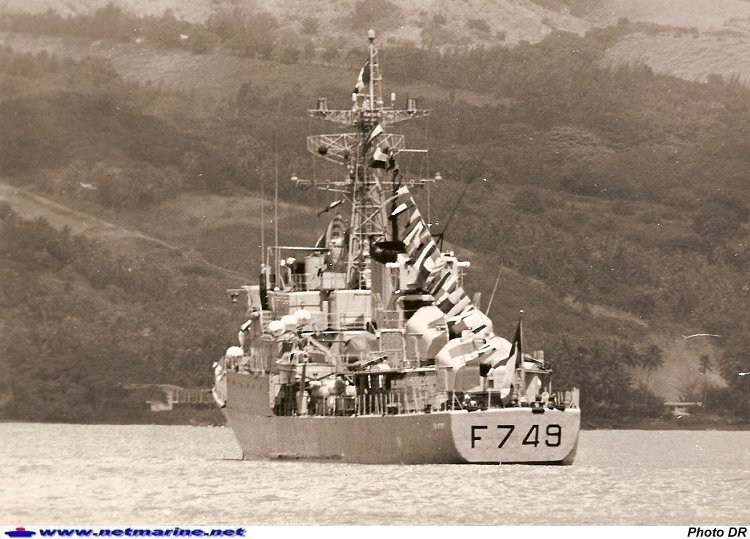 au mouillage sous grand pavois aux îles Marquises (février 1969 - Photo Gilles Jabrin).