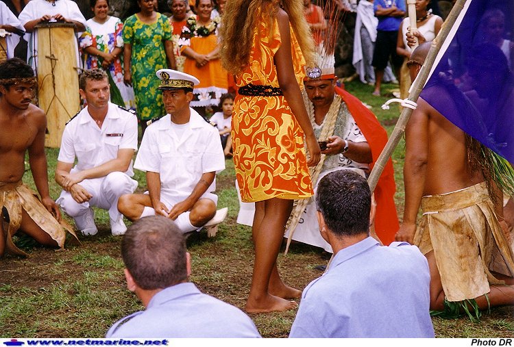 , lors d'une cérémonie traditionnelle avec la délégation de Tahuata au festival des Marquises (décembre 1999 - Photo © Franck Laniel).