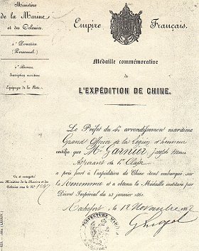 C'est à Saint-Etienne le 25 juillet 1835 qu'il naît. Après ses études au lycée de Montpellier, il est admis à l'Ecole Navale en 1855. Une première campagne l'emmène vers les mers du sud, puis il s'aventure en 1859 sur le Duperré qui part pour la Chine. C'est au cours de cette traversée qu'il se jette à l'eau en pleine nuit pour sauver un camarade emporté par une lame. Il a vingt-et-un ans avec le grade d'enseigne de vaisseau lorsqu'il découvre la Chine, pays qui ne cessera plus de le fasciner. Sous les ordres de l'amiral Charner, il participe à la prise de Pékin et au sac du Palais d'Eté par les troupes franco-britanniques. Première expédition sur le Mékong