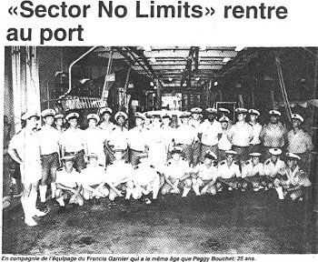 Une mission peu commune a lieu du 27 au 28 juillet : Sector No Limits, le bateau à bord duquel Peggy Bouchet tentait la traversée de l'Atlantique en solitaire à la rame, avait chaviré à 80 milles nautiques de la Guadeloupe. La jeune femme, localisée par un avion de la douane avait été prise en charge par les gardes côtes américains et ramenée en Guadeloupe, mais son bateau restait introuvable. Seule sa balise de détresse qui s'était détachée du canot a pu être récupérée par la frégate de surveillance Ventôse. Le 20 juillet les gardes côtes américains découvrent une embarcation échouée sur une plage de l'île de Vieques dans les Iles Vierges à l'est de Porto Rico. Coincidence heureuse, le Francis Garnier est en mission dans la région. Il fait alors demi-tour pour récupérer Sector No Limits et le ramener en Martinique à la grande joie de la navigatrice.