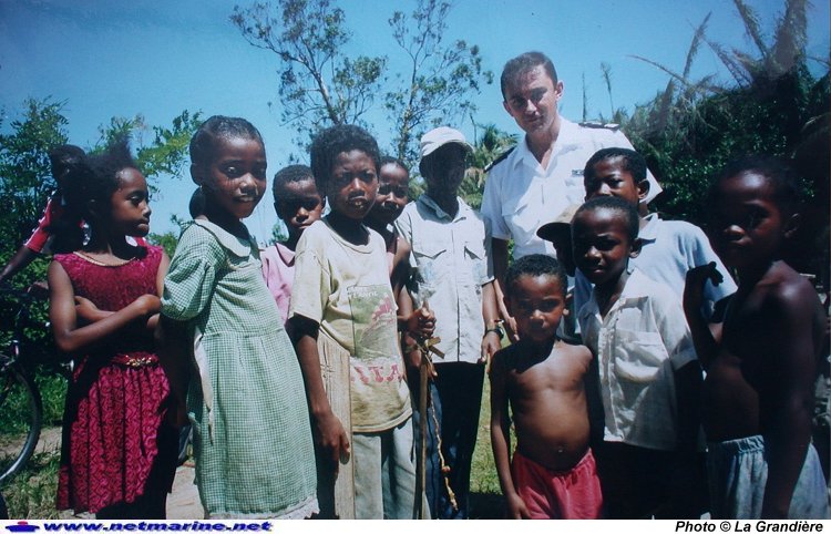 , avec les enfants du village de Maroansetra pendant l'opération humanitaire Hudah (avril 2000).