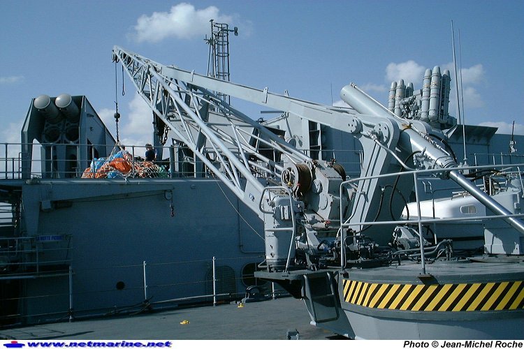 : la grue hydraulique Duchesne-Bossière permet la manutention de poids jusqu'à 5 tonnes. (Djibouti - 9 décembre 1999).