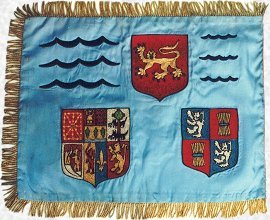 à gauche ; de part et d'autre de l'écu de Guyenne sont disposés