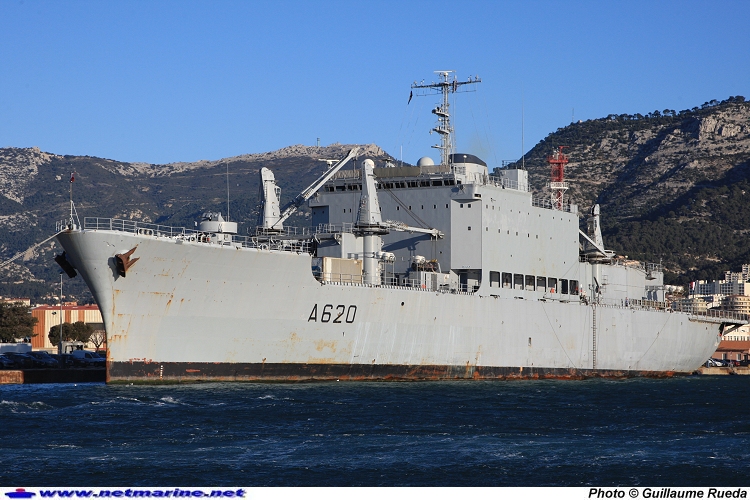 Le Bâtiment Atelier Polyvalent Jules Verne, à quai à Toulon (18 février 2009).