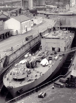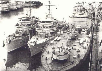 étant employée à quai pour soutenir les dragueurs de mines.