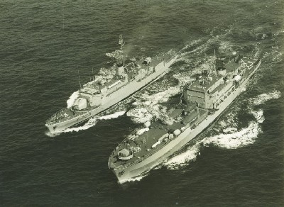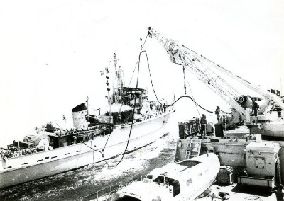soutenir est du type : Cette longue période avec tous les types de bâtiments de guerre des mines permet d'effectuer diverses expérimentations comme les ravitaillements en eau douce de dragueurs océaniques à 6 noeuds et les ravitaillements à la mer des chasseurs de mines type Dompaire.