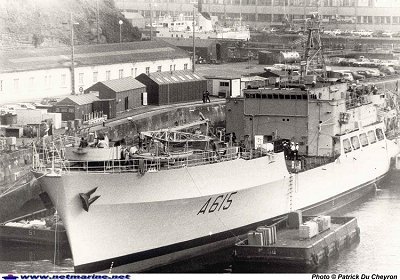 de frégate La part de travail consacrée au soutien augmente de manière conséquente à la fin des années 70, la quantité de travail fourni au profit des autres bâtiments passant de 131 Hommes.Heures par mois à 1347 en 1979. Parallèlement, les ateliers doivent se moderniser pour pouvoir accueillir les nouveaux venus dans la Force de Guerre des Mines : les chasseurs de mines tripartites, de type Éridan : cette rénovation des ateliers doit se faire en deux périodes, durant la période d'entretien du 16 juillet au 5 octobre 1979 et celle prévue en 1980-81.