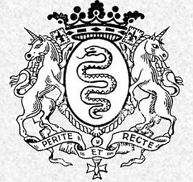 avec la devise PERITE ET RECTE (Avec habileté et droiture).