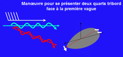- Route : bâtiment à la Cape Tribord amures reçoit la houle