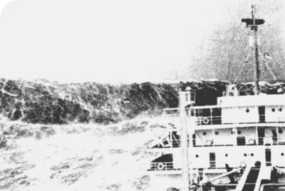 C'est grâce à cette forme extraordinaire et à leur hauteur exceptionnelle que les lames, se détachant sur une mer encore grosse, ont pu être décelées avec le préavis juste suffisant pour faire abattre le bâtiment jusqu'à la route convenable.