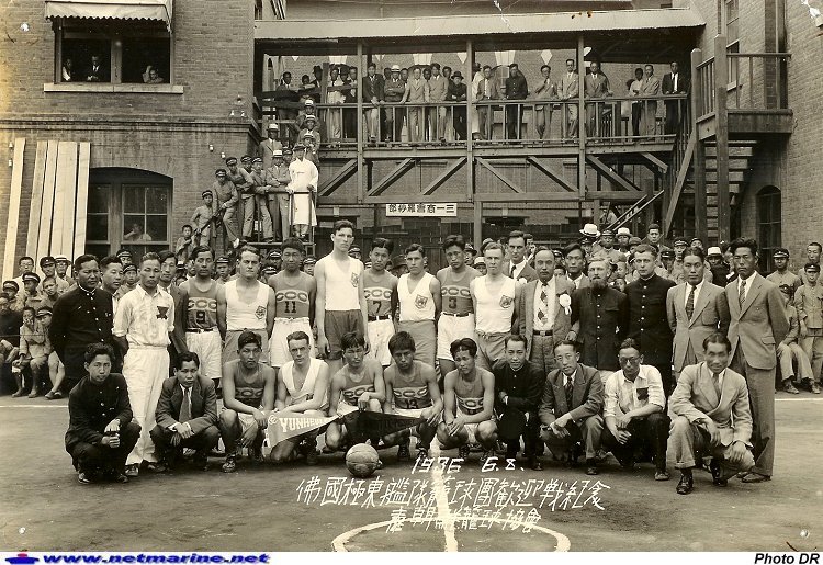 Image pitoresque d'une rencontre sportive entre des marins du croiseur