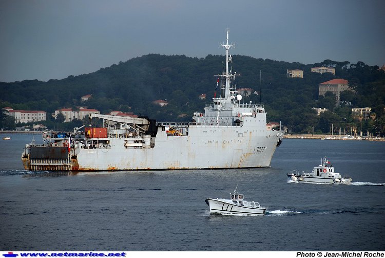 à son arrivée à Toulon, à l'issue de sa dernière grande mission. Le bâtiment désarmera peu après (17 juin 2008).