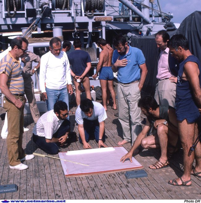 ![]() 15 au 23 mai 1986 : Le Vinh-Long et une équipe du GRAN participent une opération de recherche et de fouille archéologique de l'épave du Patriote à Alexandrie. Ce bâtiment marchand affrété en 1798 à l'occasion de l'expédition d'Egypte, transportait l'unité de fabrication d'hydrogène utilisée par la compagnie d'aérostiers et les instruments scientifiques des savants qui accompagnaient Bonaparte (Photo Max Guérout).