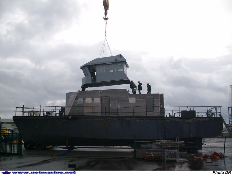 Mise en place de la timonerie du bâtiment d'instruction à la manoeuvre