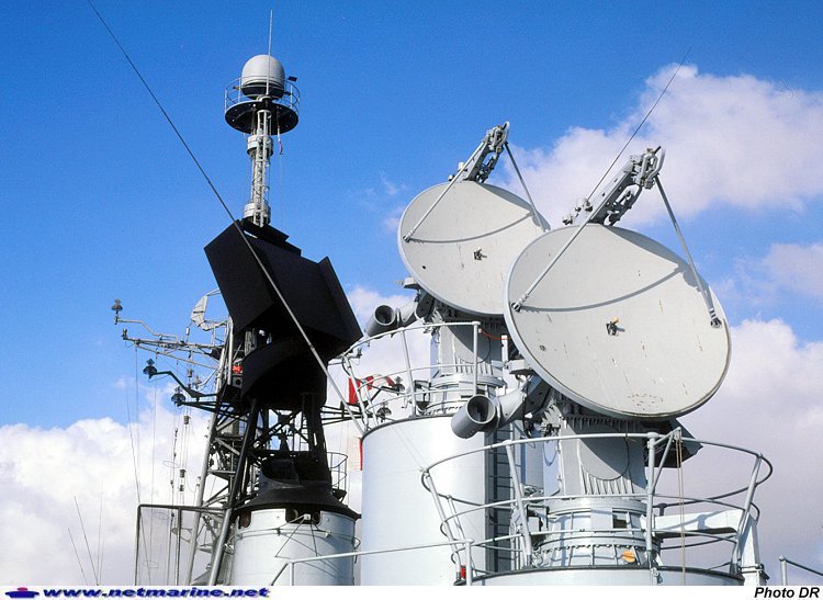 ANSPS-39, et en tête de mât, la balise TACAN, pour le contrôle