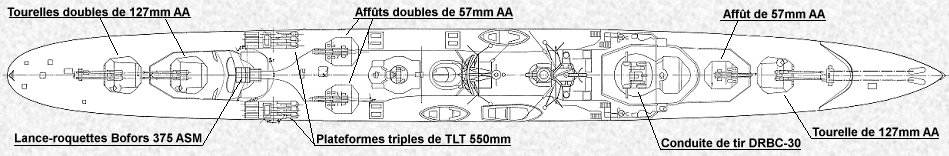 aux 57mm, mais apte au tir CA des 127mm). Outre d'un radar