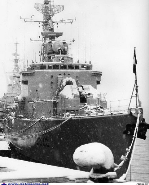 à quai à Brest, sous la neige (Hiver 1983 - photo Marc Dizerbo).
