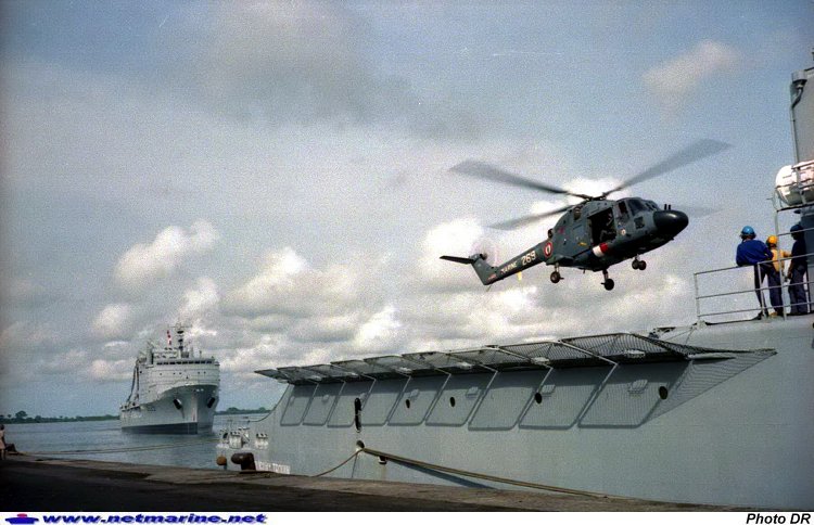 lors de la mission Okoumé. Au loin le pétrolier-ravitailleur