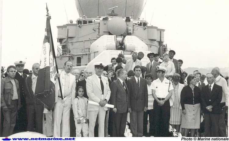 , et une importante délégation d'anciens marins, visitent le bâtiment (29 mai 1983).