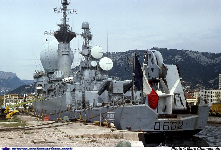 à quai à Toulon en 1977. A noter, la présence des affuts de 30mm, en service à cette époque avant d’être ultérieurement remplacés par des