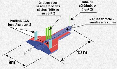 de 30 tonnes, longue de 13 m et large de 9 m (augmentant le tirant