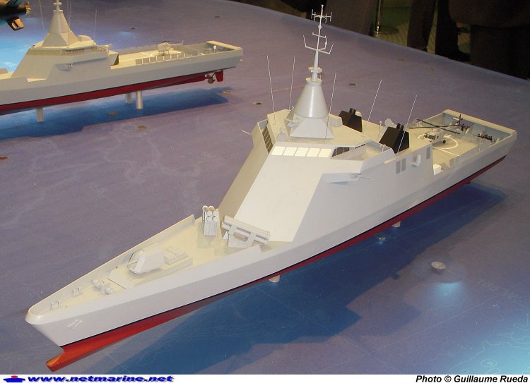 Une maquette de corvette Gowind est présenté au salon Euronaval 2008. C'est de ce design que naîtra le patrouilleur hauturier
