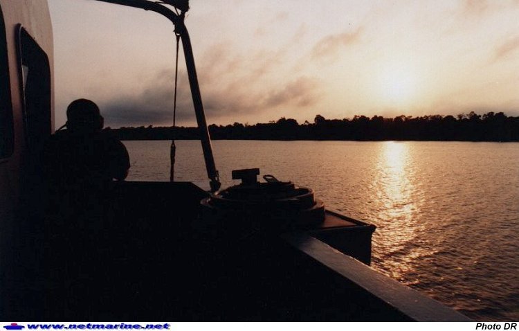 lors de la remontée d'un fleuve sud-américain; la solitude du veilleur sur l'aileron.
