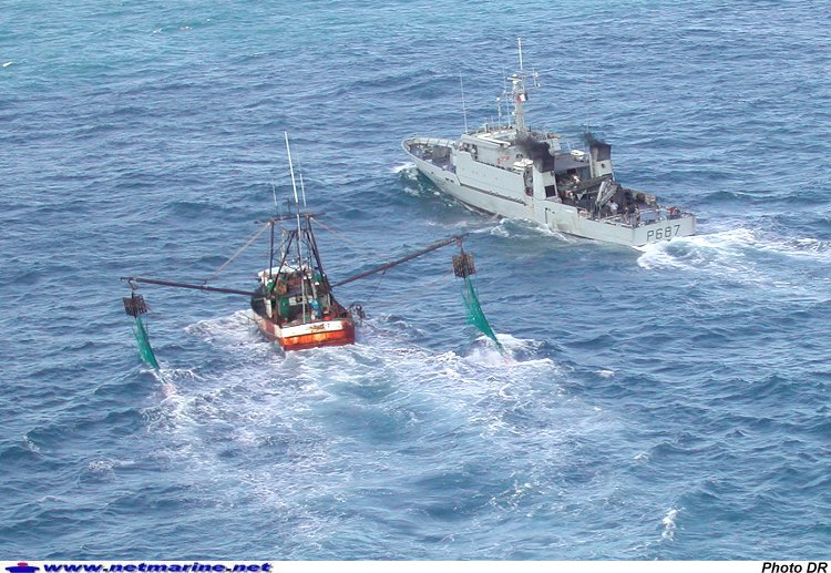 en interception d'un crevettier étranger en infraction dans la ZEE de la Guyane française (décembre 2002).