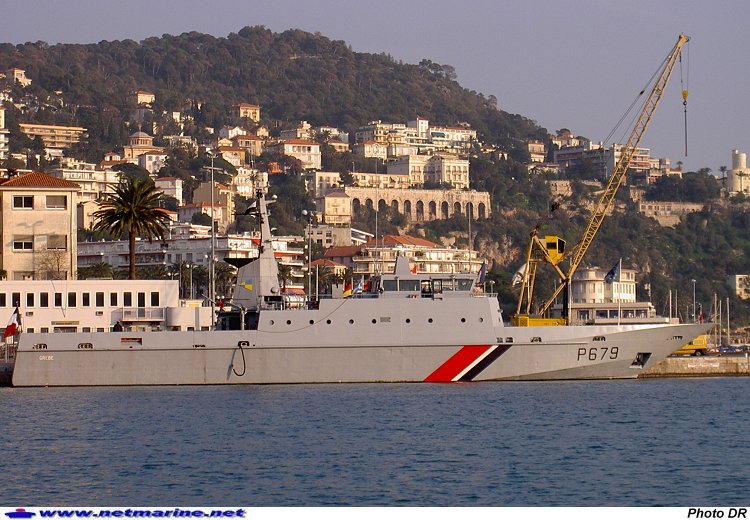 en escale à Nice. Remarquez les nouvelles bandes de marquage bleu-blanc-rouge, caractérisant les bâtiments de service public (15 février 2004 - photo Jérome Agostini).
