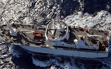 Patrouilleur Le Malin ![]() Aujourd'hui patrouilleur d'Etat, ce bâtiment a pourtant commencé sa vie comme palangrier. Sa spécialité était la pêche à la légine, un poisson des grandes profondeurs dont la chair est très appréciée en Asie... et très chère. La légine est aussi un poisson protégé, et le Caroline Glacial travaillait en toute illégalité ! Il débute sa carrière de contrebandier en Antarctique, opérant sous des pavillons de complaisance (Panama, Honduras). Passant d'un armateur à l'autre, le navire est vendu en 2003 et 2004, et rebaptisé successivement America n°1 puis Apache. Un jour de juin 2004, le patrouilleur austral Albatros, l'intercepte et l'arraisonne aux Kerguelen. Le brigand est contraint de rallier la Réunion. Il est saisi dès son arrivée à Port-des-Galets. L'Apache est en parfait état, récent, moderne et robuste. La marine nationale est intéressée pour intégrer le navire dans sa flotte.
