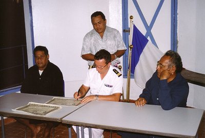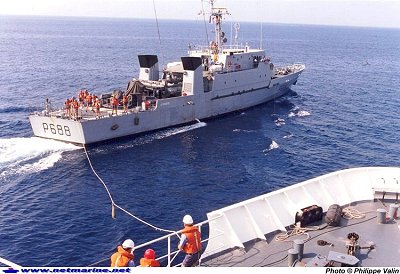 Une escale dans l'île marraine de Futuna (12 au 15 juillet) revêt un caractère particulièrement important. La forte participation de l'équipage aux cérémonies et festivités organisées par la délégation et les royaumes de Sigave et Alo, l'affluence inattendue de la population pour assister au feu d'artifice tiré par l'équipage et la projection d'un diaporama présentant La Moqueuse, puis d'un film en plein air sur le bâtiment sont à l'origine de cette émouvante réussite. A l'issue d'un exercice Cagou (24 au 26 juillet) avec La Glorieuse et le Jacques Cartier, le![]() Partie le 25 novembre de Nouméa, La Moqueuse emporte sept scientifiques et techniciens (CNRS, météorologie nationale,...) et plusieurs tonnes de matériel ; destination : l'île de la Surprise. L'atoll éponyme, situé à une centaine de nautiques au Nord-ouest de la Nouvelle-Calédonie, va être pour les uns le théâtre de trois semaines de recherche, pour les autres le lieu de remise en état d'une station automatique d'observation. Laissant les scientifiques sur place, La Moqueuse relâche 3 jours à Port-Vila et à Lenakel ('île de Tanna). Après trois semaines de présence dans la zone et plusieurs contrôle de pêcheurs, le patrouilleur revient récupérer les Robinsons du CNRS à l'île de la Surprise pour les ramener à Nouméa le 13 décembre. Net-Marine © 2009. Sources : Communiqués de presse, articles de journaux, divers. Remerciements : LV Geoffroy Roussel, LV Luc Savoyant, LV Hervé Couble, EV François-Olivier Corman, ASP Benoît Berthod, ASP Olivier Wolber. Copie et usage : cf. droits d'utilisation [Sommaire
