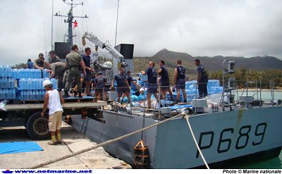Deux mois après son premier passage, La Railleuse repart dans ces atolls au paysage surréaliste afin de permettre à l’administrateur des Tuamotu d’assurer la permanence de la France en Polynésie française, ainsi qu’aux gendarmes de régler les différents conflits susceptibles d’avoir lieu dans ces endroits reculés. En outre, l’infirmier du bord se révèlera fort utile en pratiquant de nombreux soins sur ces atolls qui ne voient que peu de passage. Le patrouilleur transitera par les atolls de Hereheretue, Tematangi, Hao, Reao, Pukarua et Amanu avant de reprendre la mer pour le port de Papeete. La deuxième partie de la mission amènera La Railleuse à convoyer les autorités dans les différentes îles de l’archipel. La mission terminée, le P400 rallie son port base, et se prépare à passer les fêtes de fin d’année à Tahiti. 2009 L’activité à la mer reprend le 23 janvier pour le patrouilleur qui part pour une journée d’essai au large de Moorea « l’île sœur » avant ses deux jours d’entraînement au large de Huahine les 26 et 27 janvier. Le passage par Huahine permet à l’équipage du P400 de se réhabituer à la manœuvre de prise de coffre, manœuvre peu fréquente étant donné la rareté des coffres dans cette région du Pacifique. Le bâtiment appareille le 3 février pour une mission de surveillance des pêches aux Marquises. Dès la sortie des passes La Railleuse rejoint, au nord de Moorea, le destroyer USS Preble afin d’effectuer avec lui différents exercices. Le P400 fait ensuite cap vers les Marquises où il accompagne le Haut-commissaire de la République en Polynésie française dans les différentes îles. Nuku Hiva, Hiva Oa, Eiao, Fatu Hiva, Tahuata, Ua Uka, et Ua Pou, l’île marraine du patrouilleur, auront vu le passage du P400 permettant ainsi à l’équipe administrative de remplir sa mission dans les meilleures conditions.