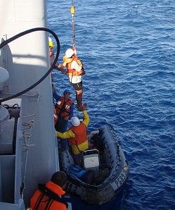 Suit une patrouille de surveillance des pêches aux limites nord-est de la Zone Economique Exclusive (ZEE) de Polynésie française. Plusieurs navires sont contrôlés, mais aucun ne se révèle en infraction. Après trois semaines d’absence et près de trois mille huit cent nautiques parcourus, La Railleuse est de retour à Papeete le 12 août. Iles Cook (novembre 2010) Entre le 3 et le 23 novembre, La Railleuse participe à la mission Kurukuru 2010 de surveillance des pêches, qui regroupe 16 pays (Etats-Unis, Australie, Nouvelle-Zélande et de nombreux pays insulaires de l’ouest Pacifique), dans le cadre de la WCPFC (Western and Central Pacific Fisheries Comission). Aux cotés des 14 bâtiments de combat et de 6 aéronefs, dans la zone High Sea Pocket (HSP) - une partie du Pacifique située entre la Polynésie française et la ZEE des îles Cooks - qui lui était attribuée, le patrouilleur a mené à bien deux contrôles complets de pêcheurs taiwanais sans relever aucune infraction. ... Net-Marine © 2010 - [Sommaire